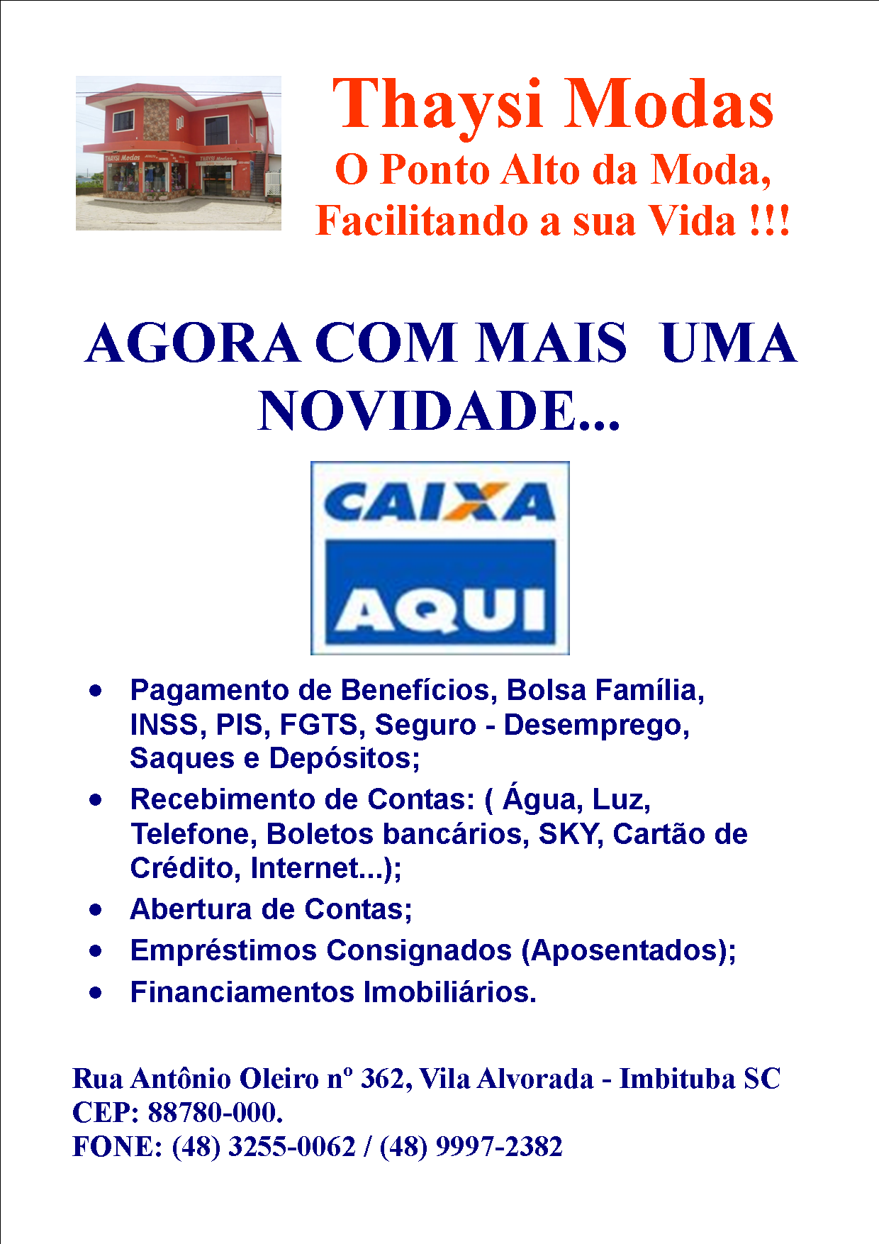 Thaysi Modas e Correspondente Caixa AquiRua Antonio Oleiro nº362